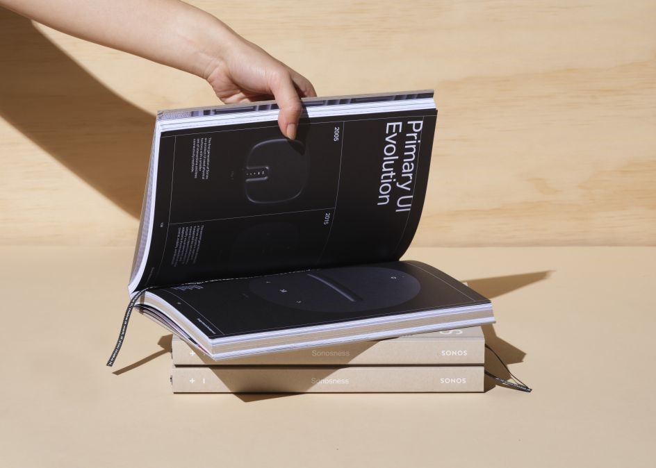 Cevaplar, kitabın yerleşim sisteminden cildine kadar her bir öğesini şekillendiriyor. Sonos için marka kitabı, ürün tasarımında bulunan özeni yansıtmak için dokunsal malzemeler kullanarak kendi başına bir tasarım nesnesi haline geldi. Kapak kabartması, ikonik hoparlör ızgarası desenini yansıtırken, iç kısım Sonos ambalajında kullanılan aynı ızgara felsefesini takip etti.