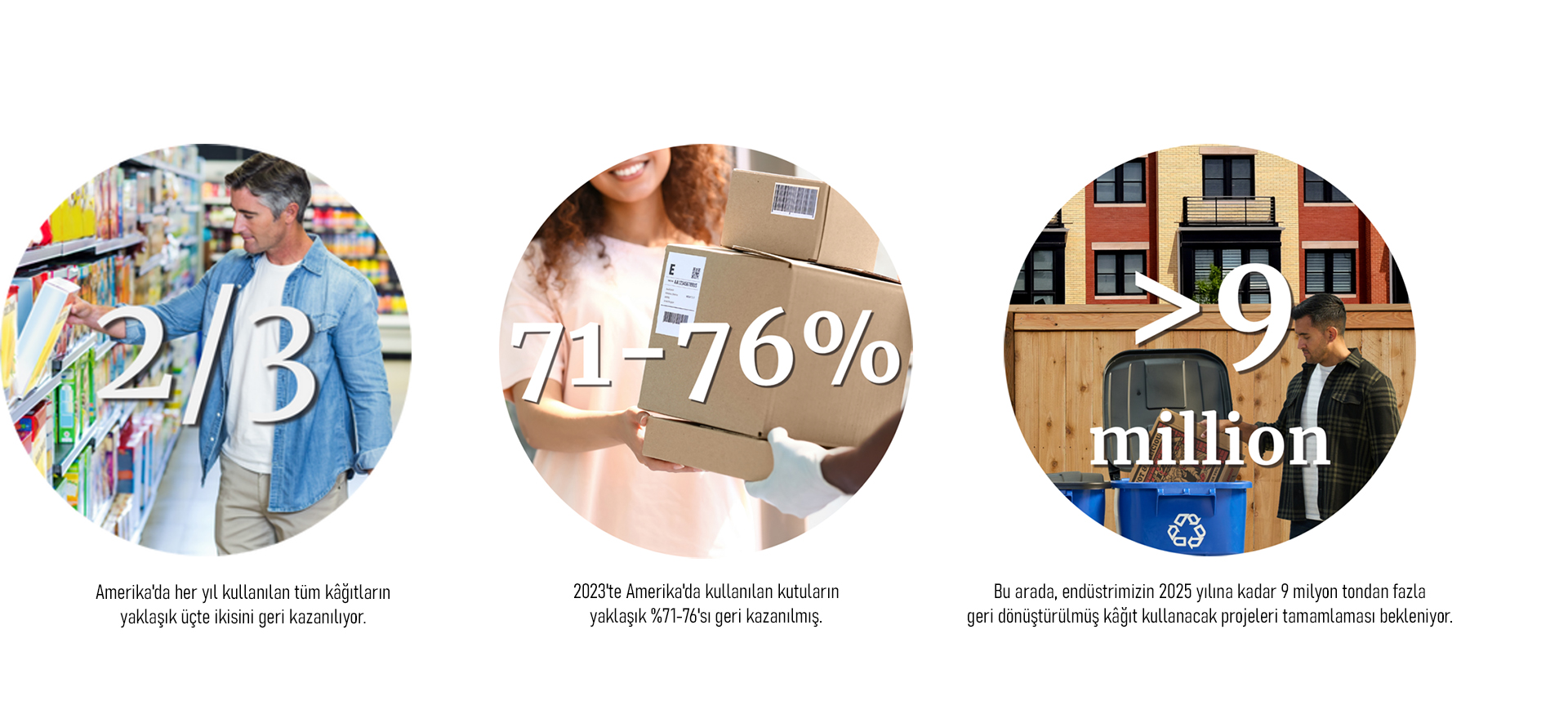 Kâğıt ve ambalaj üreticileri adına geri dönüşümün geleceği için yaptığımız büyük şeylerin yalnızca sizin gibi insanların her gün verdiği milyarlarca bireysel karar sayesinde mümkün olduğu gerçeği yok sayılamaz.